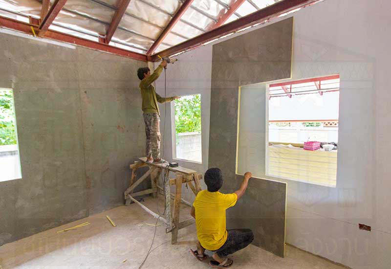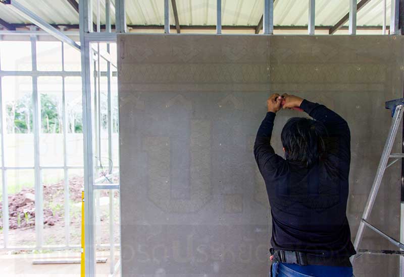 ซีเมนต์บอร์ด ป.พ. ติดผนังคอนกรีต