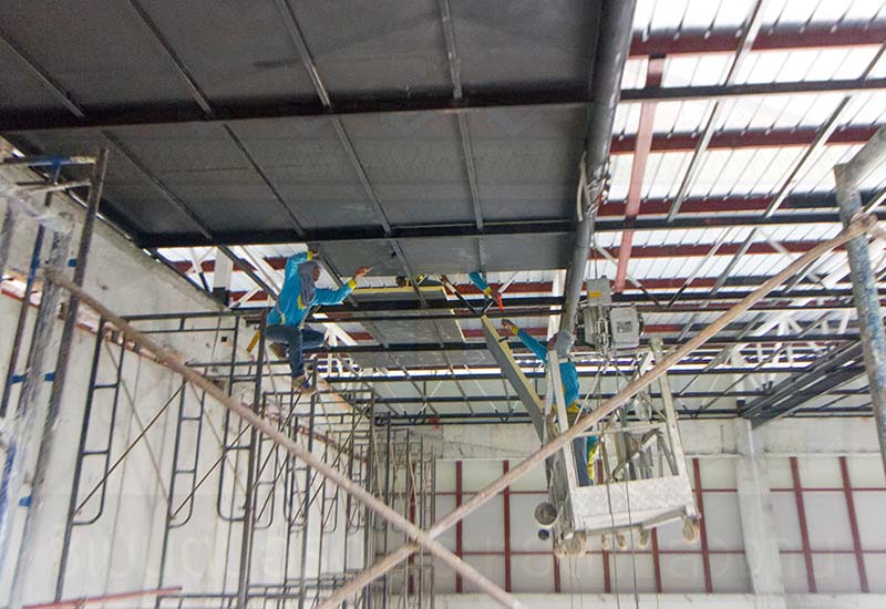 ซีเมนต์บอร์ด ป.พ. ทำฝ้าโชว์โครงเหล็ก สีดำ